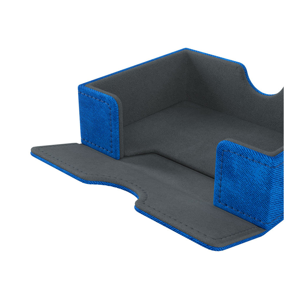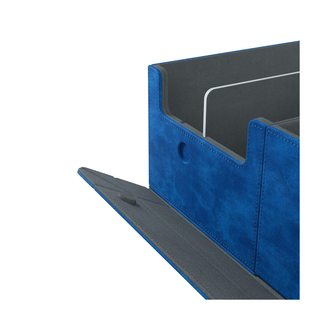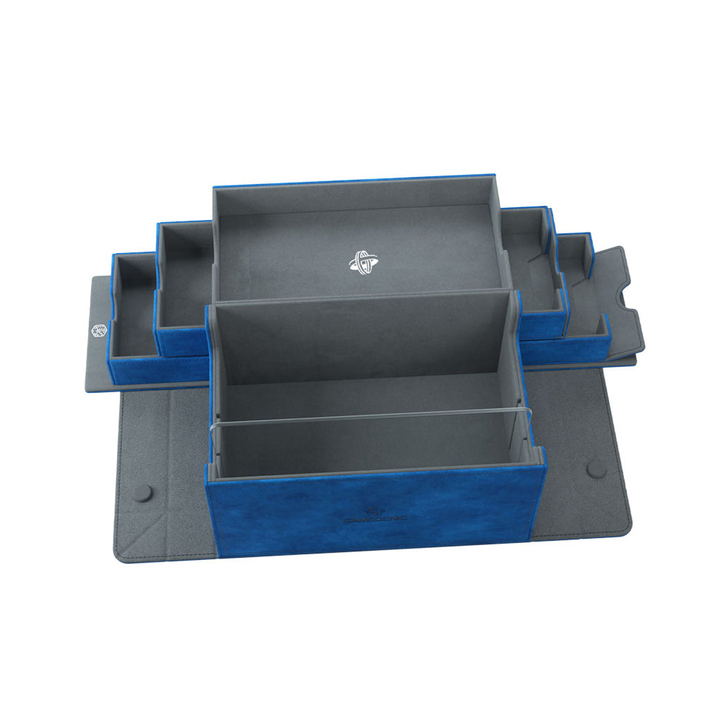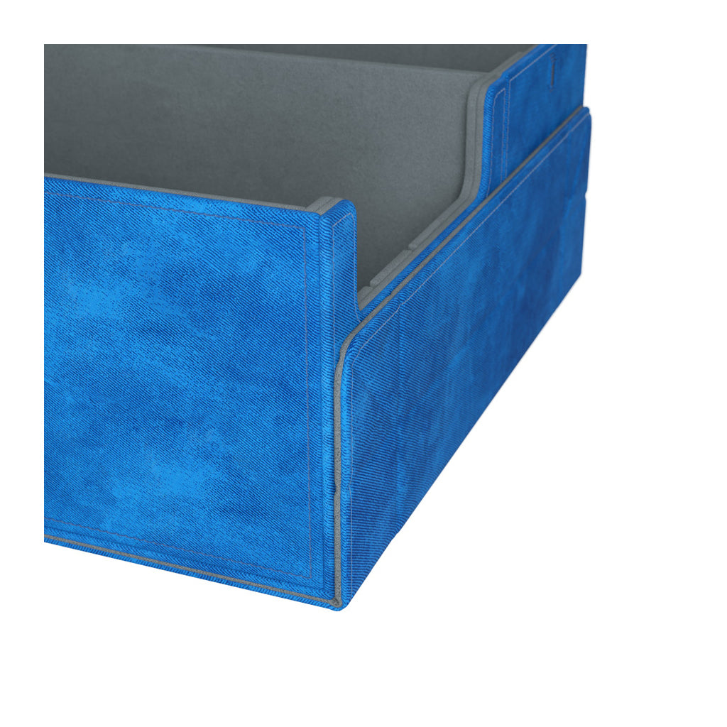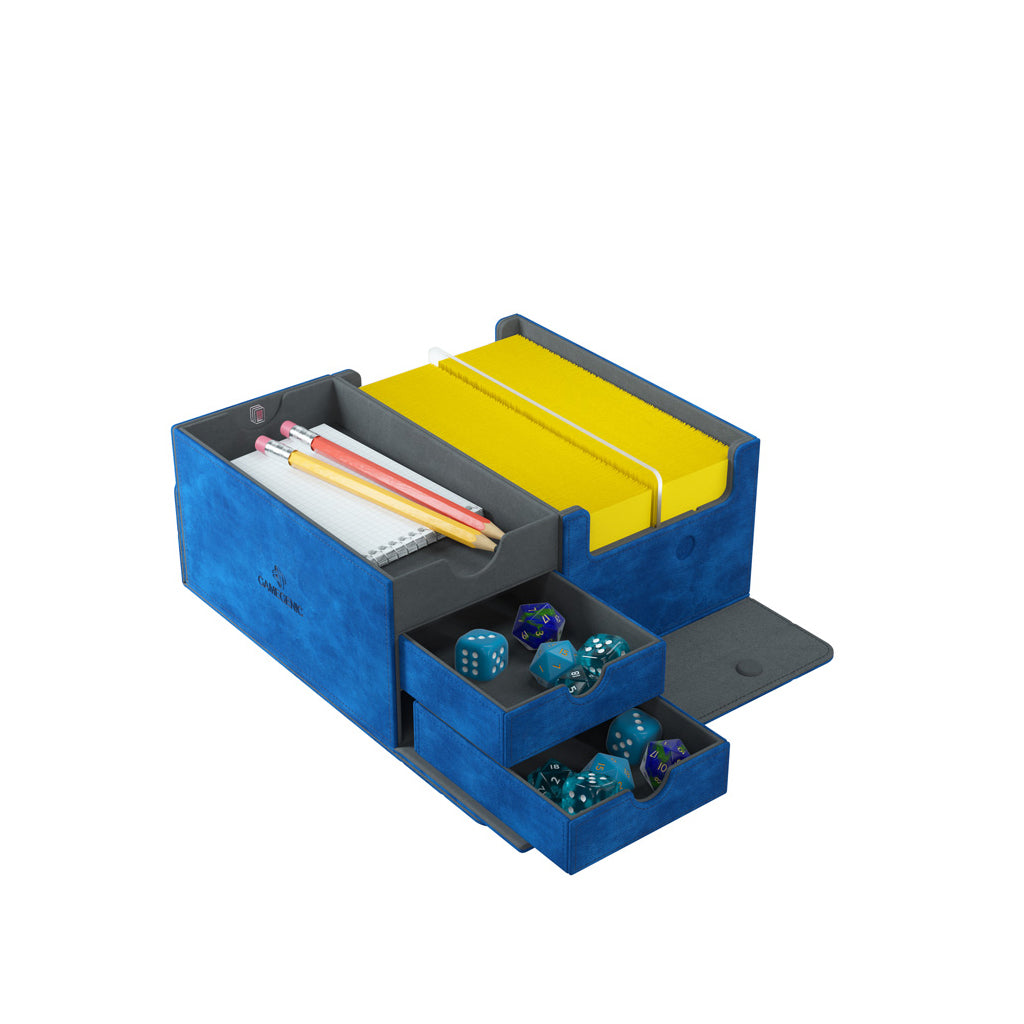 The Games’ Lair 600+ is a premium multifunctional box for a vast variety of games, gaming accessories, miniatures, and card-related games. It can hold 600 double-sleeved or 800 single-sleeved cards in the main compartment. If card storage is not the purpose, the acrylic divider can be removed to store any kind of deck boxes, games, or accessories.