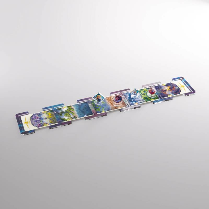 The track is designed to hold the game’s Adventure cards securely in place – even with sleeves. Precise notches grant easy access and make flipping the cards easy. The high-quality acrylic material combined with the beautiful art are ideal for an upgraded gaming experience. The track is delivered in two pieces, ensuring easy assembly and compact storage